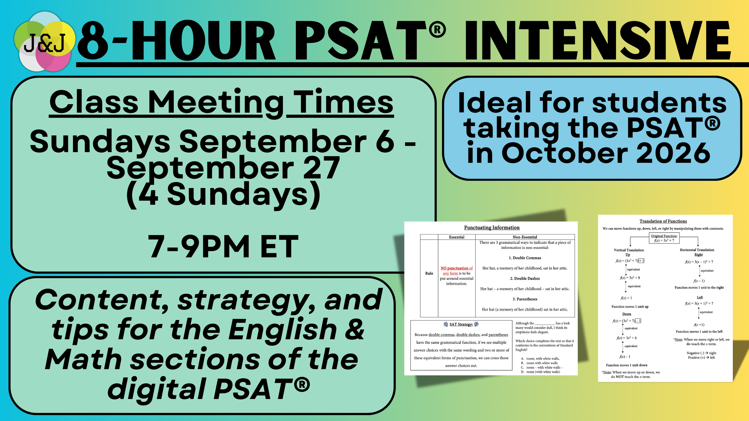 Our 8-Hour Intensive PSAT® Course will cover each section of the PSAT®: